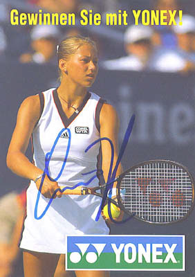 Anna Kournikova 4"x6" autographed photo card comes with a Life Time Guarantee and a Certificate of Authenticity.